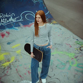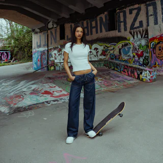 Cleane Schnitte, weite Silhouetten, Farben die zu allem passen. Basics, die nicht schreien — aber trotzdem auffallen. Das Skateboard liegt zufällig daneben, die Hände in den Taschen, der Blick irgendwo in der Ferne. So trägt man Famous.🛹