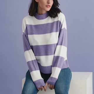 Entdecke die zauberhaften Nuancen von Lila in unseren Strickpullovern, die nicht nur warm, sondern auch stilvoll sind.💜