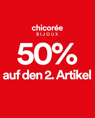 50% auf 2. Artikel Chicorée BijouxErhalte beim Kauf von zwei Artikeln der Chicorée Bijoux Kollektion einen Rabatt von 50% auf den günstigeren Artikel!😍