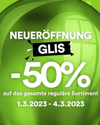 50% Rabatt auf das gesamte reguläre Sortiment bei der Eröffnung der Filiale Glis vom Mittwoch, 1.3.2023 bis Samstag, 4.3.2023🎉