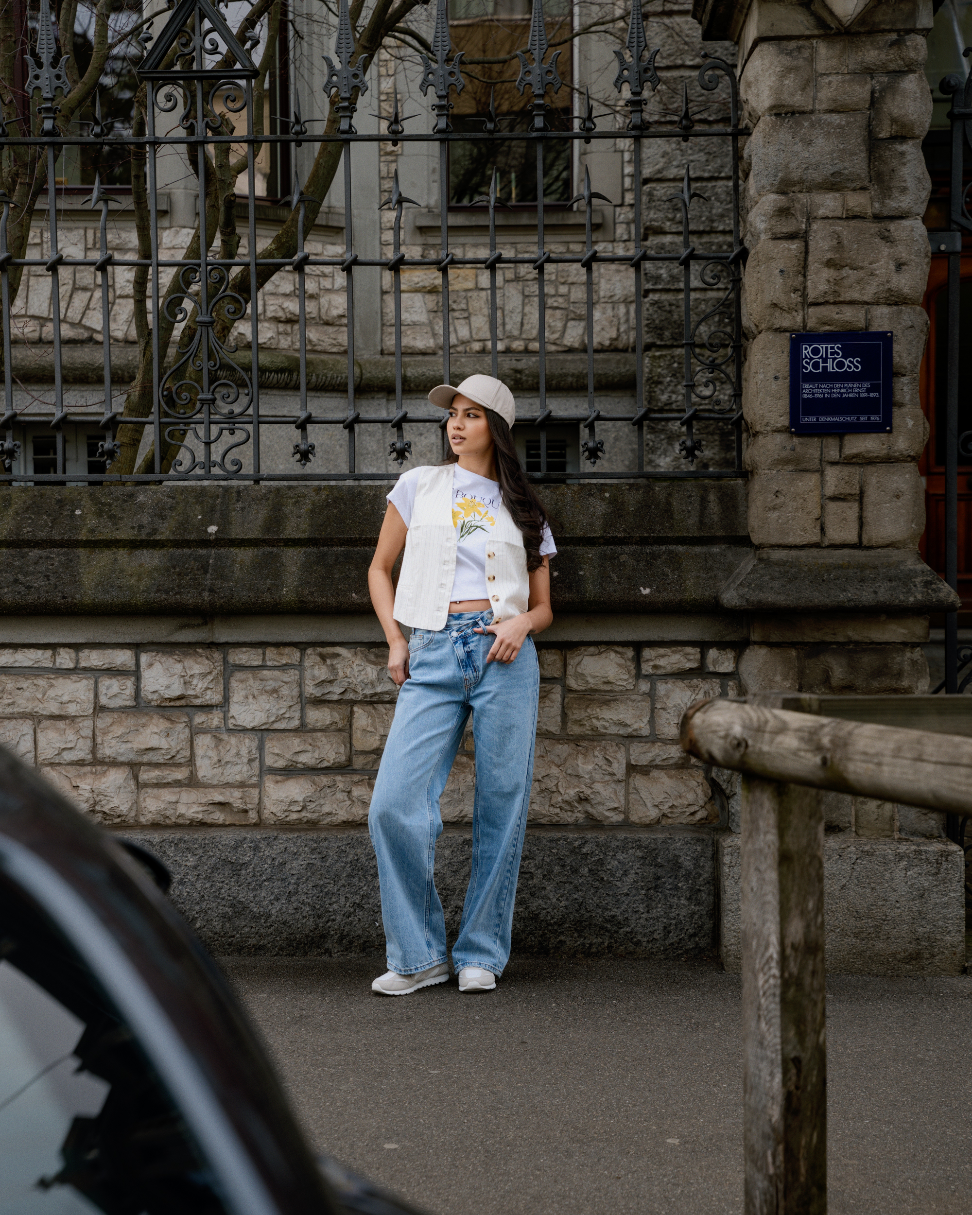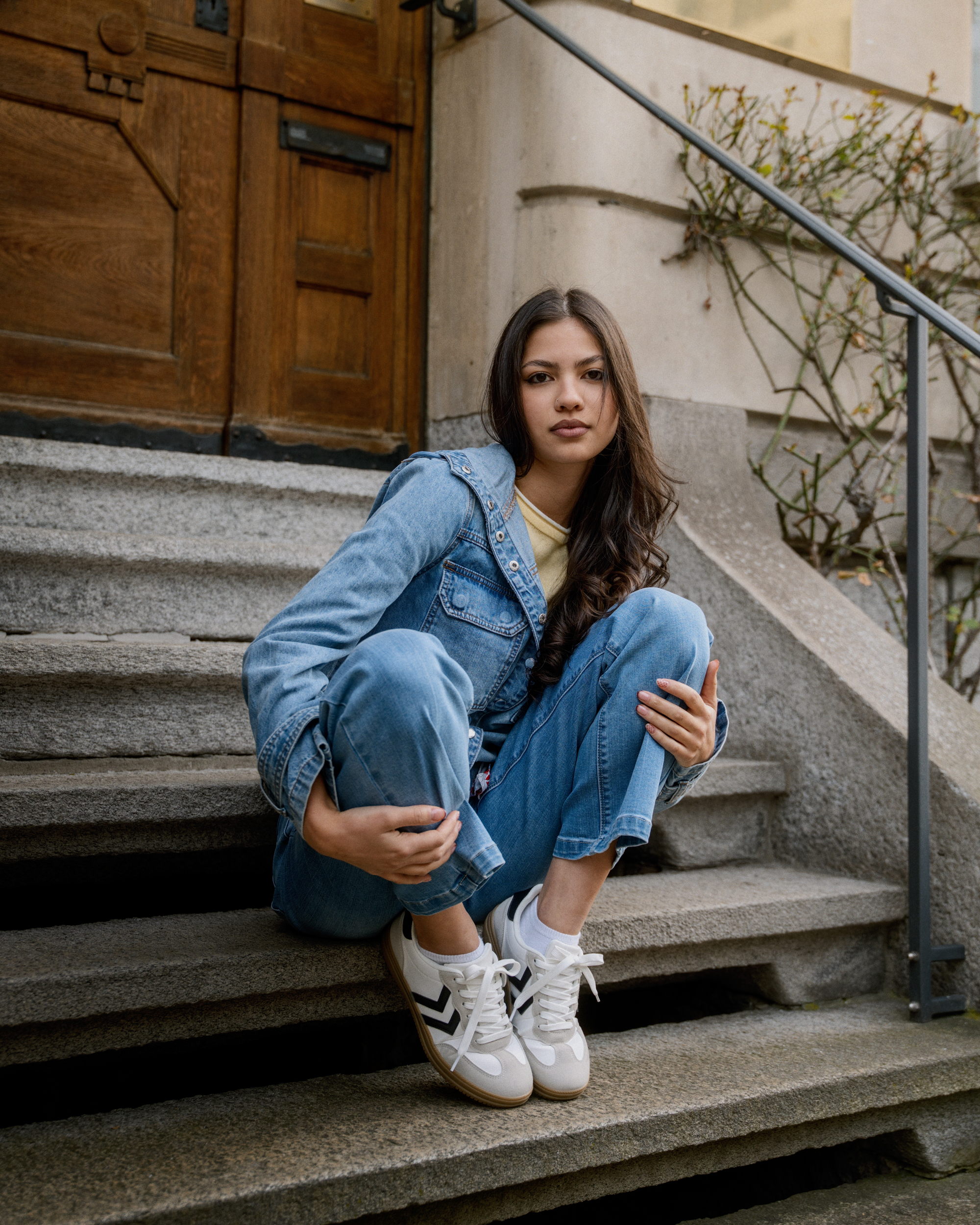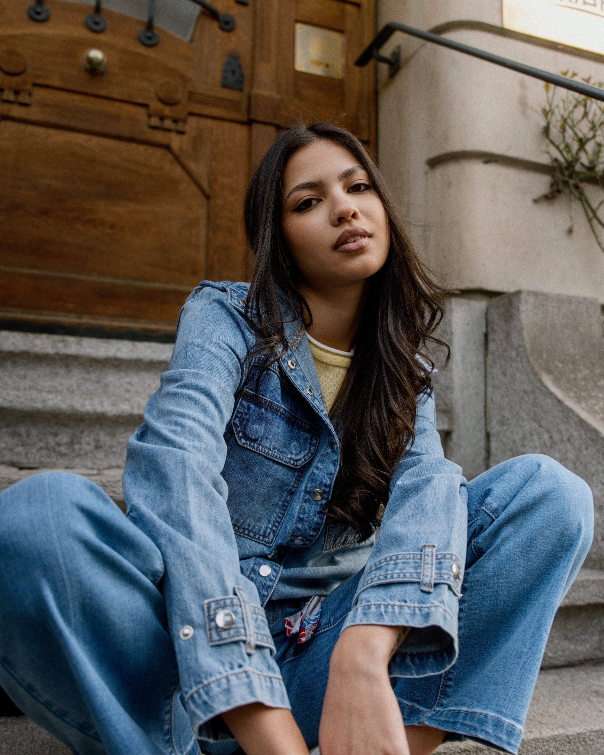 Jeans relaxed, vestes légères et blazers stylés se mêlent à des couleurs claires et à des tons denim doux. Des sneakers et de petits sacs complètent le look pour un style street moderne et décontracté.