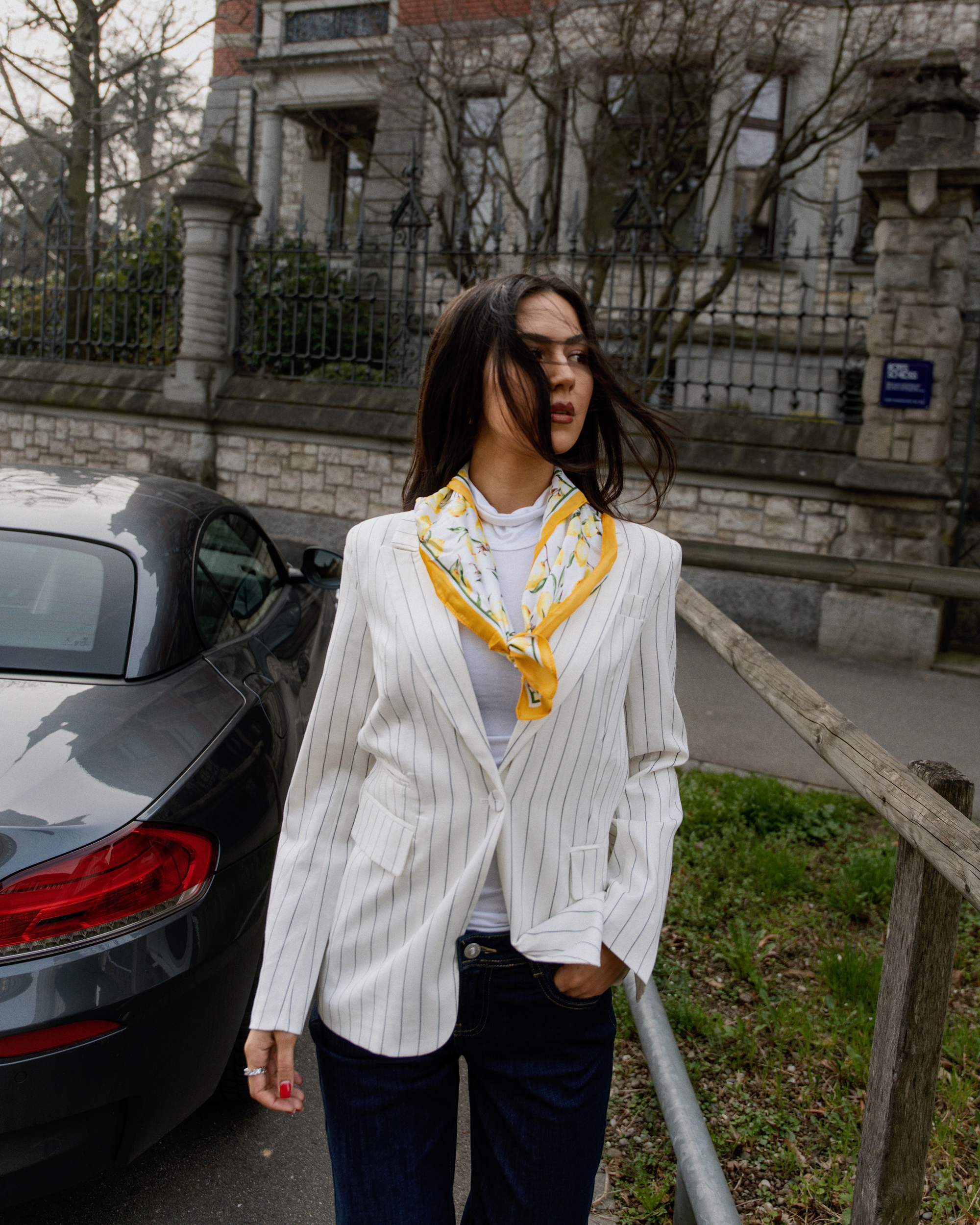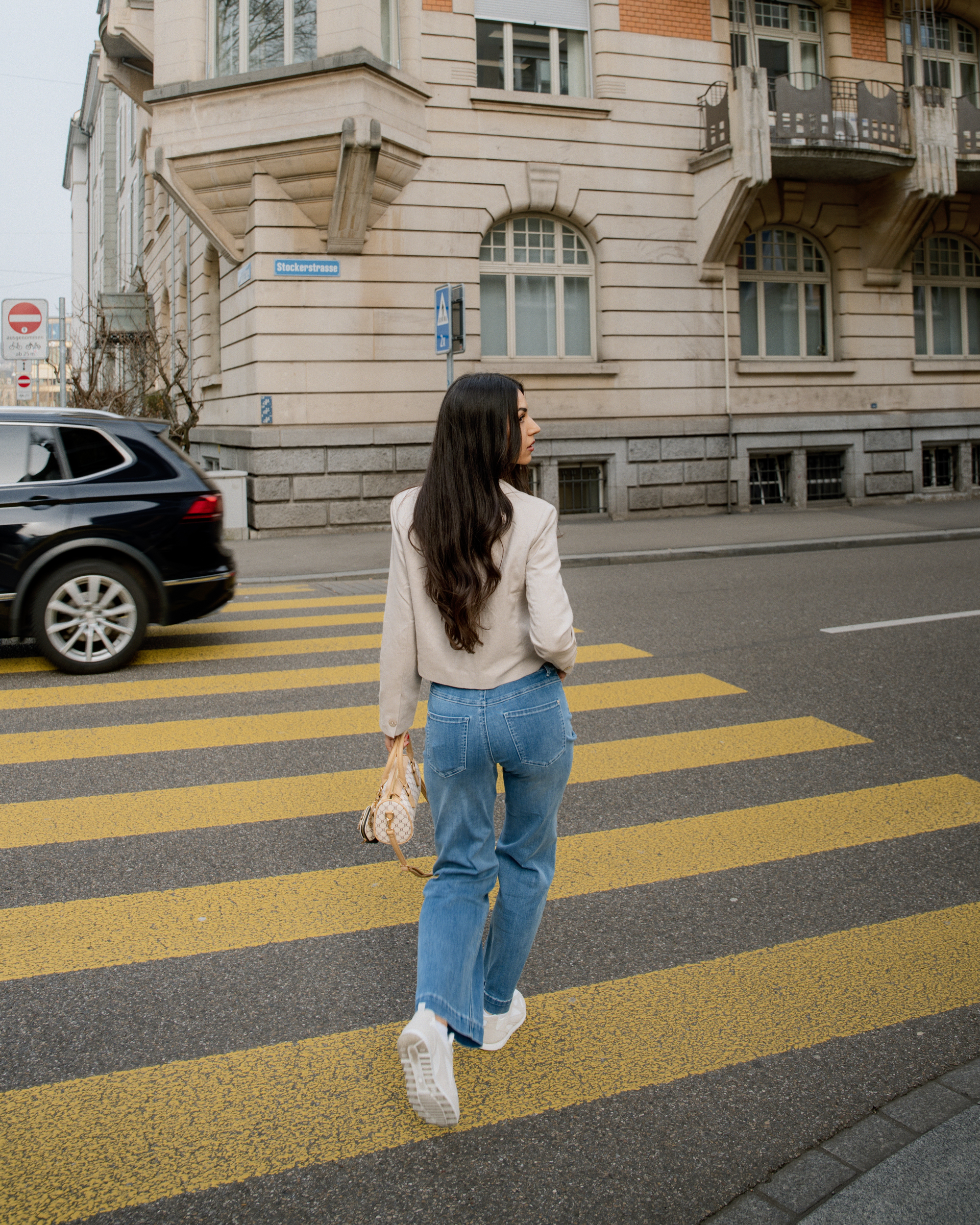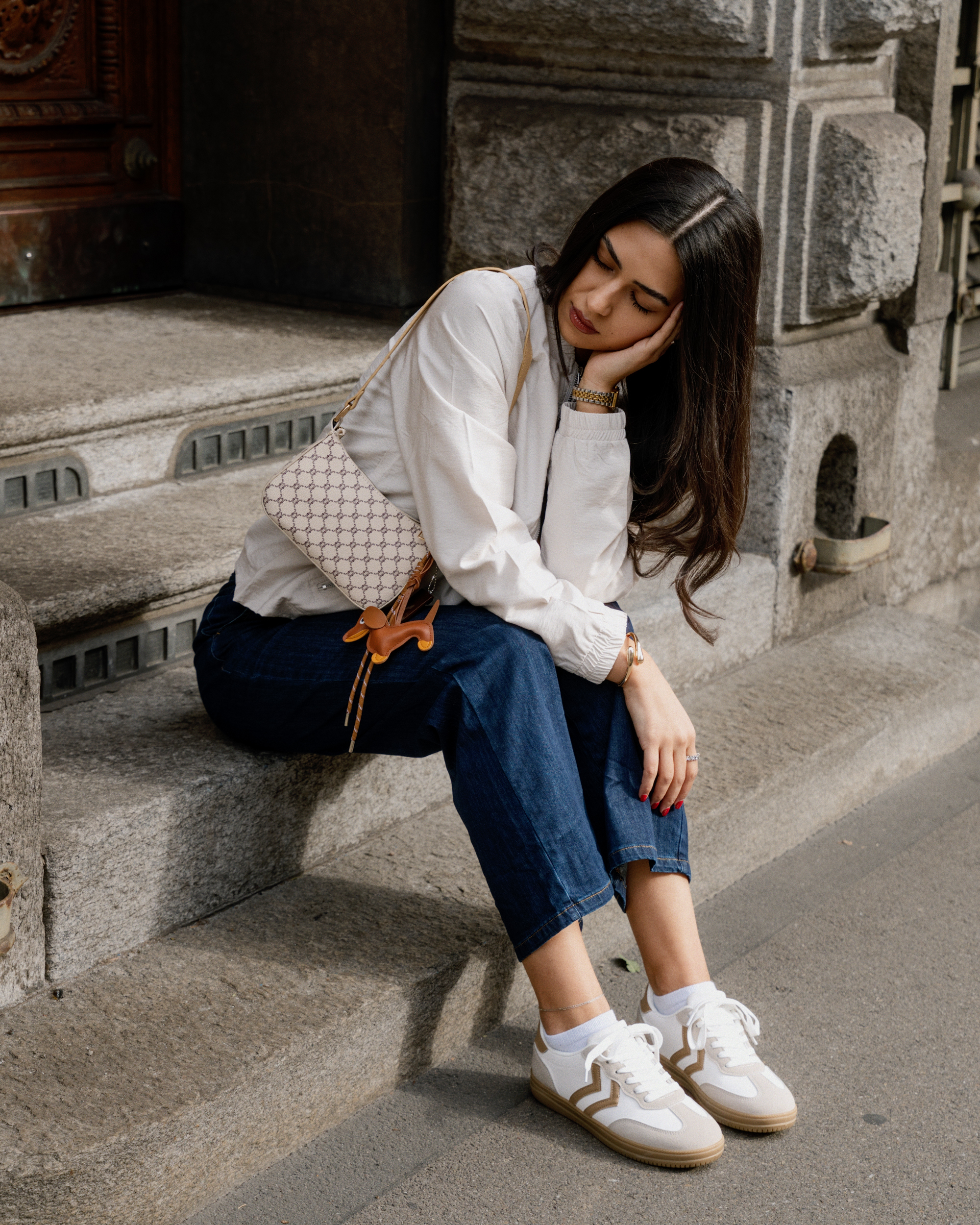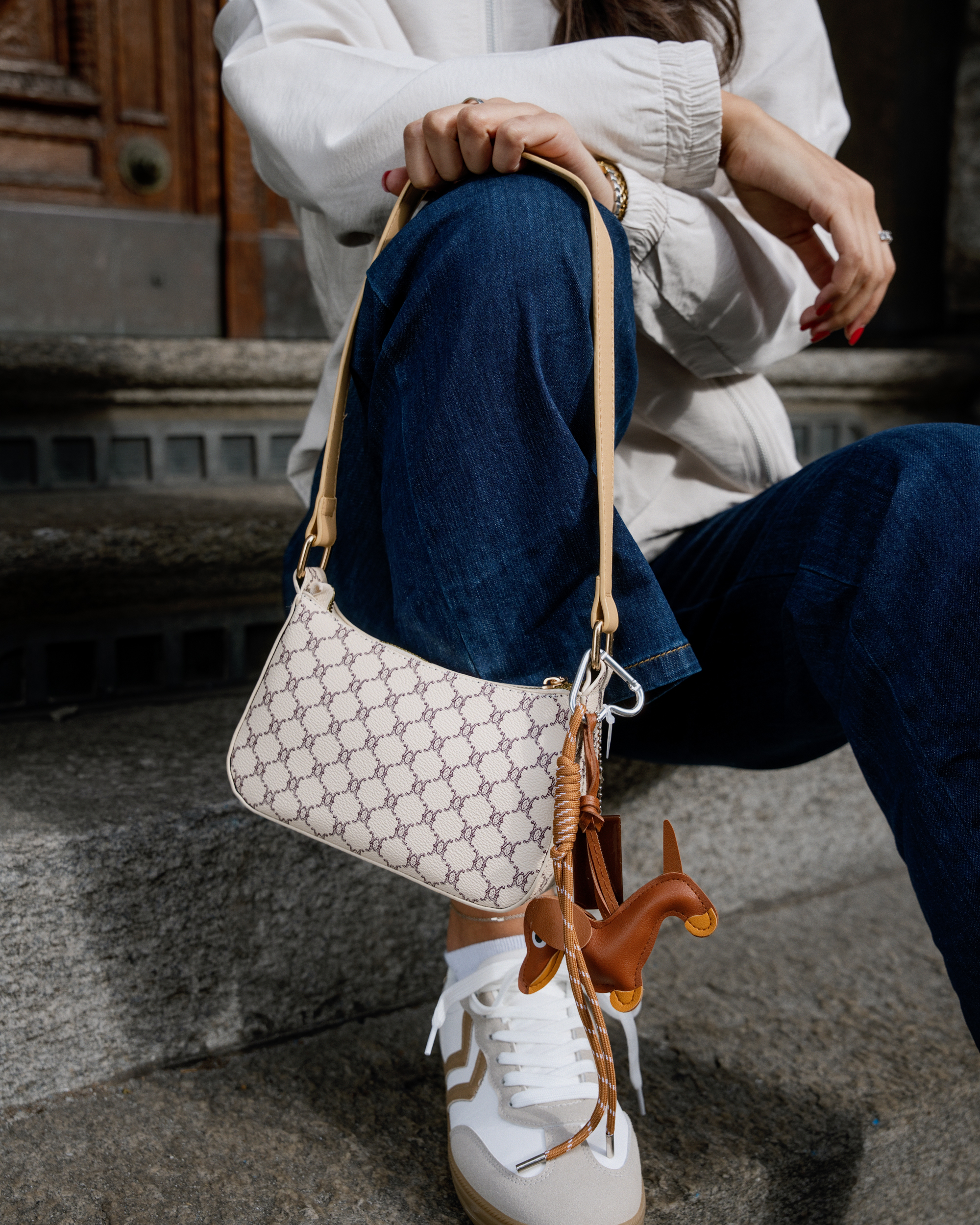 Jeans relaxed, vestes légères et blazers stylés se mêlent à des couleurs claires et à des tons denim doux. Des sneakers et de petits sacs complètent le look pour un style street moderne et décontracté.